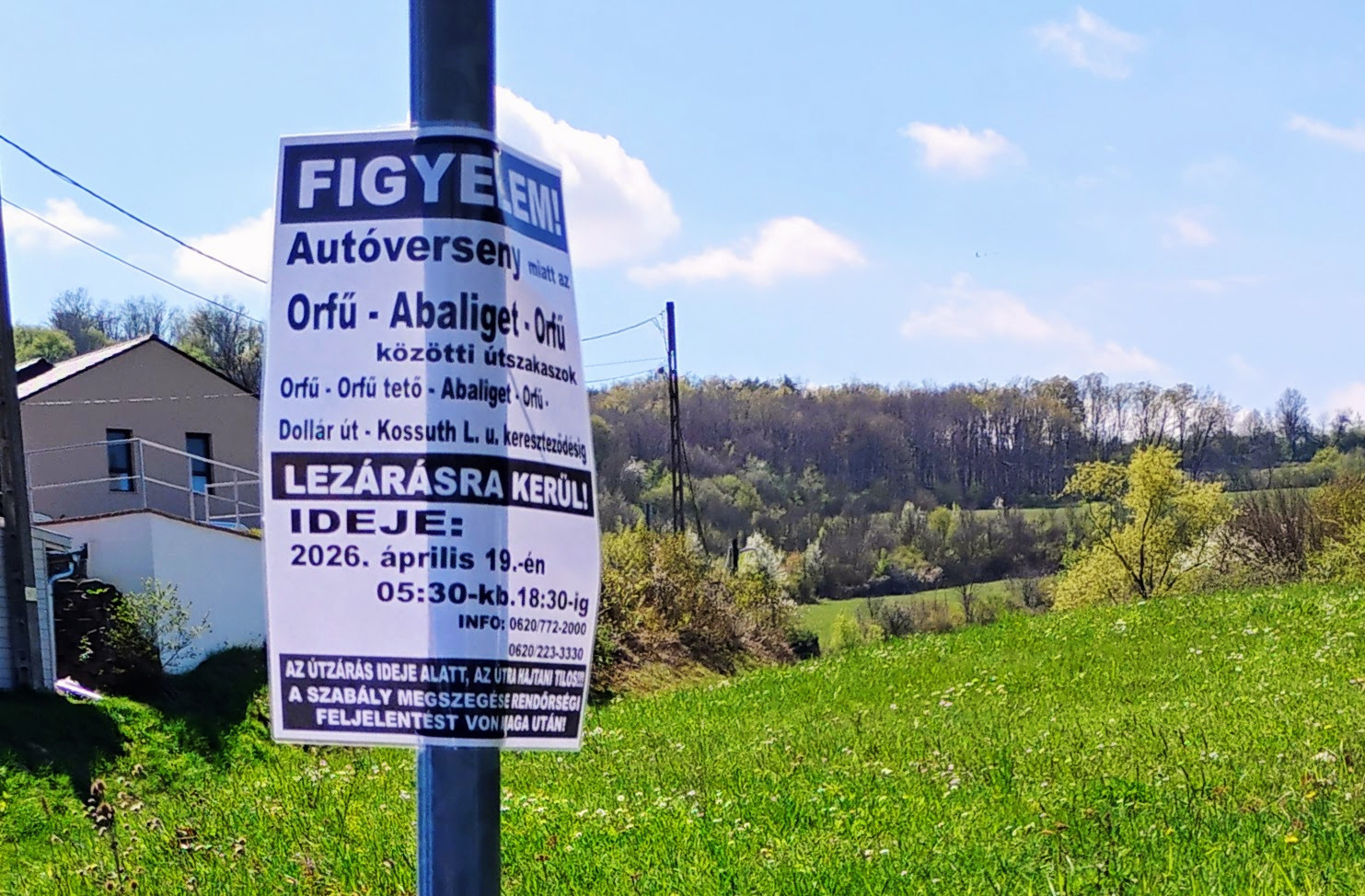 2026. március 2. és március 31. között folytatódik a balesetveszély elhárítása a Remeterét - Orfű közötti útszakaszon úton.